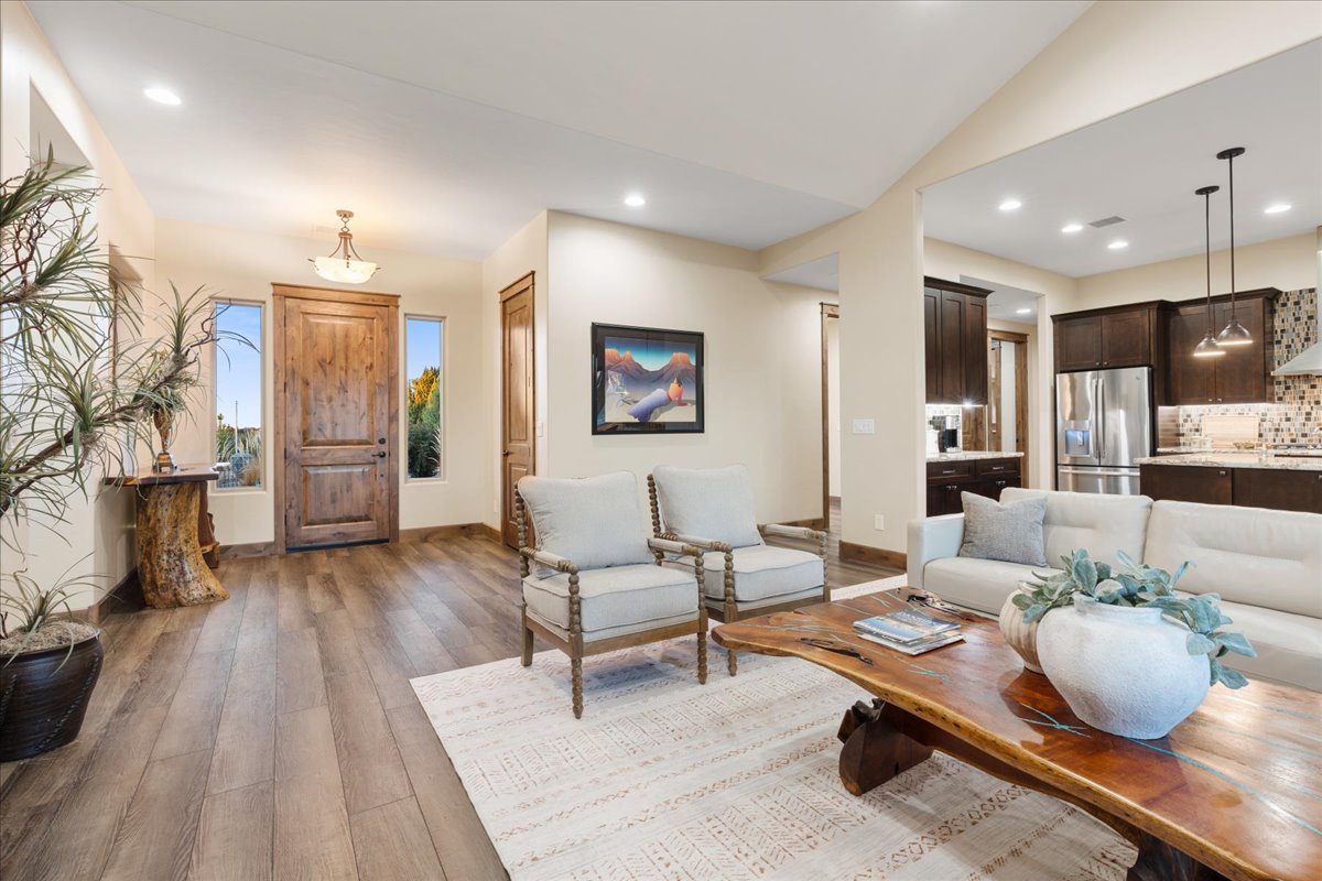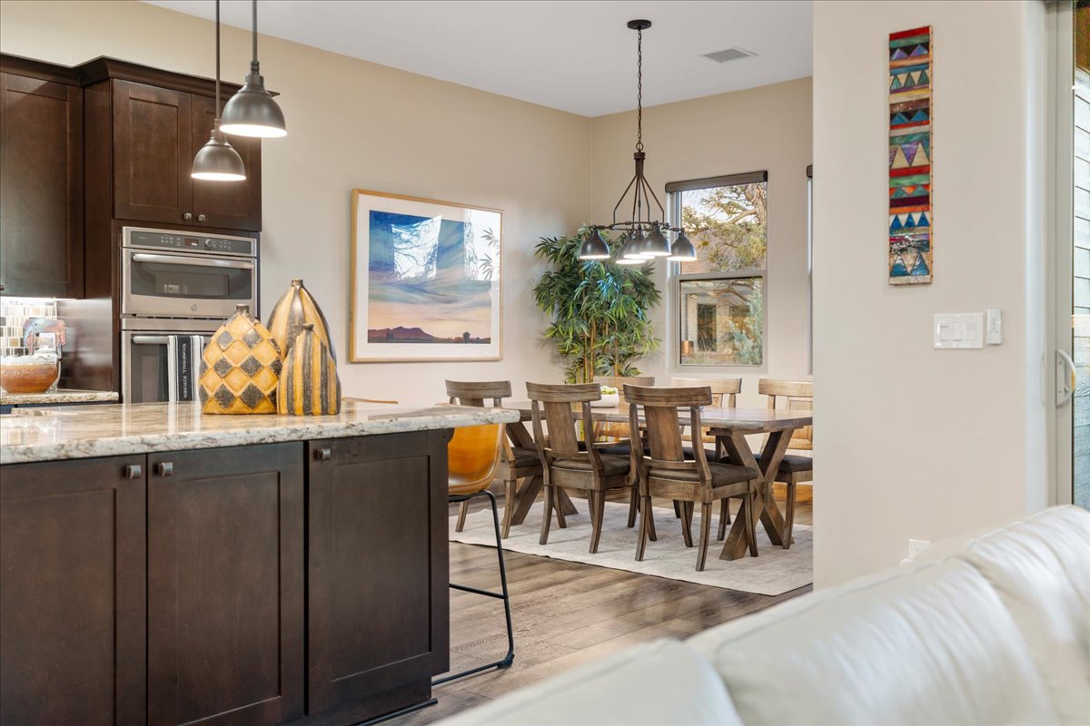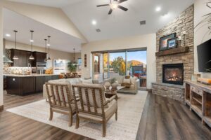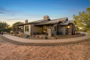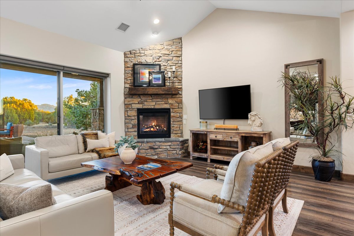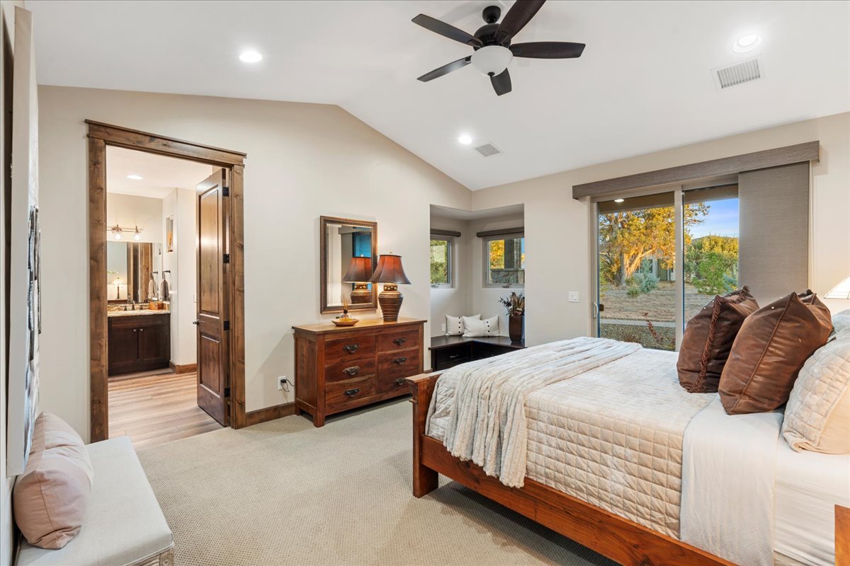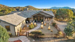 Timeless Designer Finishes set on large corner lot & Granite Mountain views, spacious fenced courtyard area with covered porch & elegant stone exterior accents. 3-bedroom plus office boasting a spacious great-room living that seamlessly blends indoor & outdoor spaces, 8-foot knotty alder doors and cabinetry, GE Profile appliances, a walk-in pantry & refined finishes at every turn. The spa-inspired primary suite offers his-&-her vanities, a soaking tub & a walk-in shower, with the laundry room conveniently located off the walk-in closet. A functional mudroom & split floor plan enhance privacy & everyday living. A 3-car extended garage with built-in cabinetry. Located within the exclusive gated community of Talking Rock with premier Jay Morrish-designed golf course, club house, dining, pickle ball & dog park.