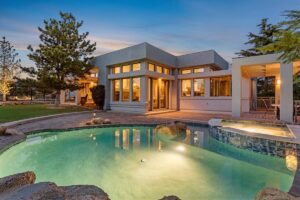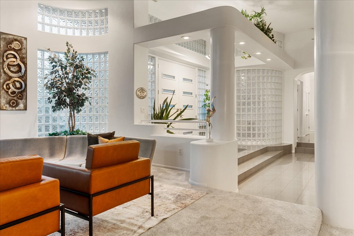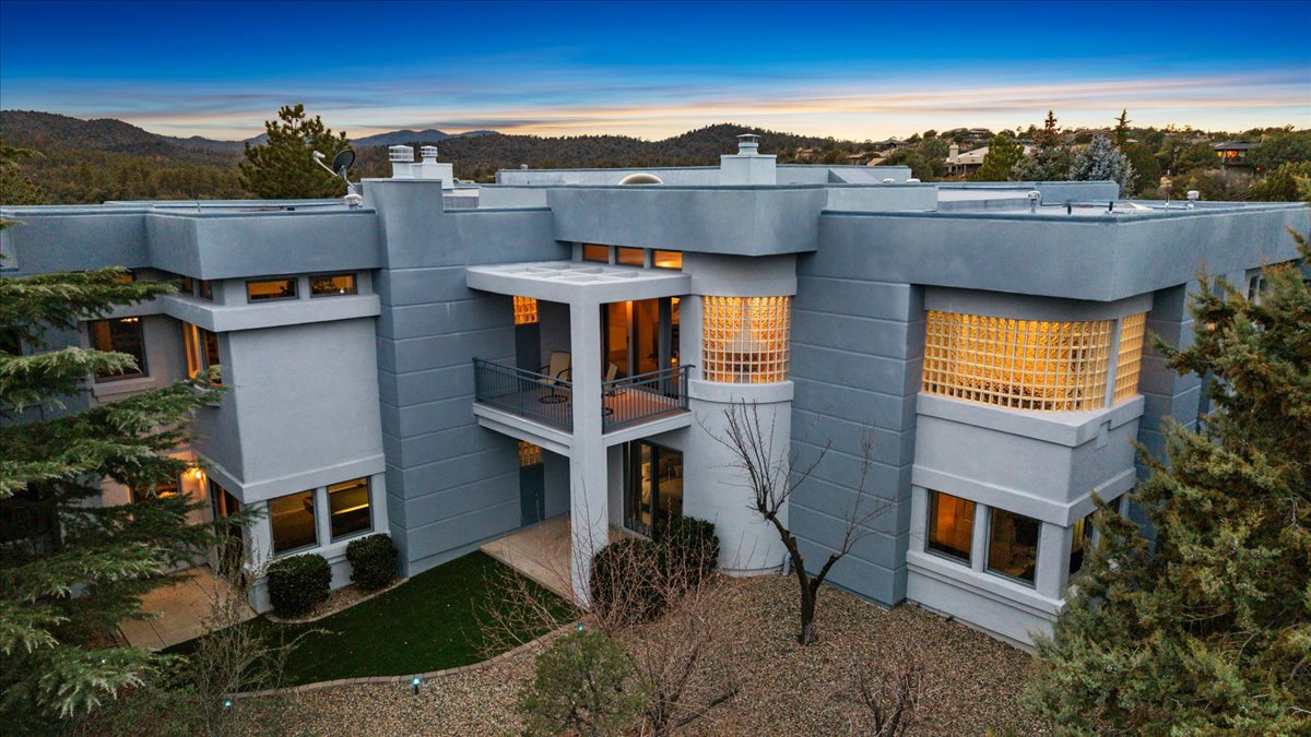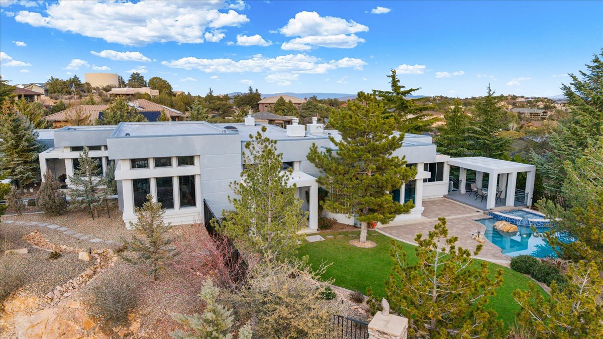 Interior defined by flowing lines & sculptural architectural form. Strategically sited to fully capitalize on unobstructed views of Thumb Butte. The home is thoughtfully positioned to engage the surrounding topography, natural light & sightlines. The architectural placement frames the landmark as a focal point, integrating indoor & outdoor living spaces to maximize visual connection while preserving privacy and harmony with the landscape. Luxury appointments include: Four fireplaces, Office Suite w/ wet bar, High-end finished cabinets, outdoor patios areas, saltwater pool & spa w/ Jandy automation system & waterfall feature, game room, paver courtyard w/ water feature, expansive brick paver back patio & yard w/ artificial turf & gazebo. New 3 zone HVAC & water heaters